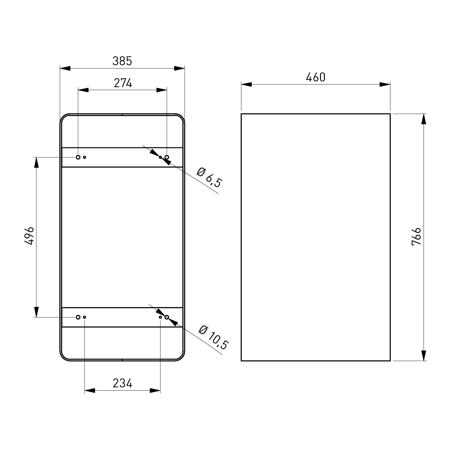 - Maße (H x B x T): 766 x 385 x 460 mm